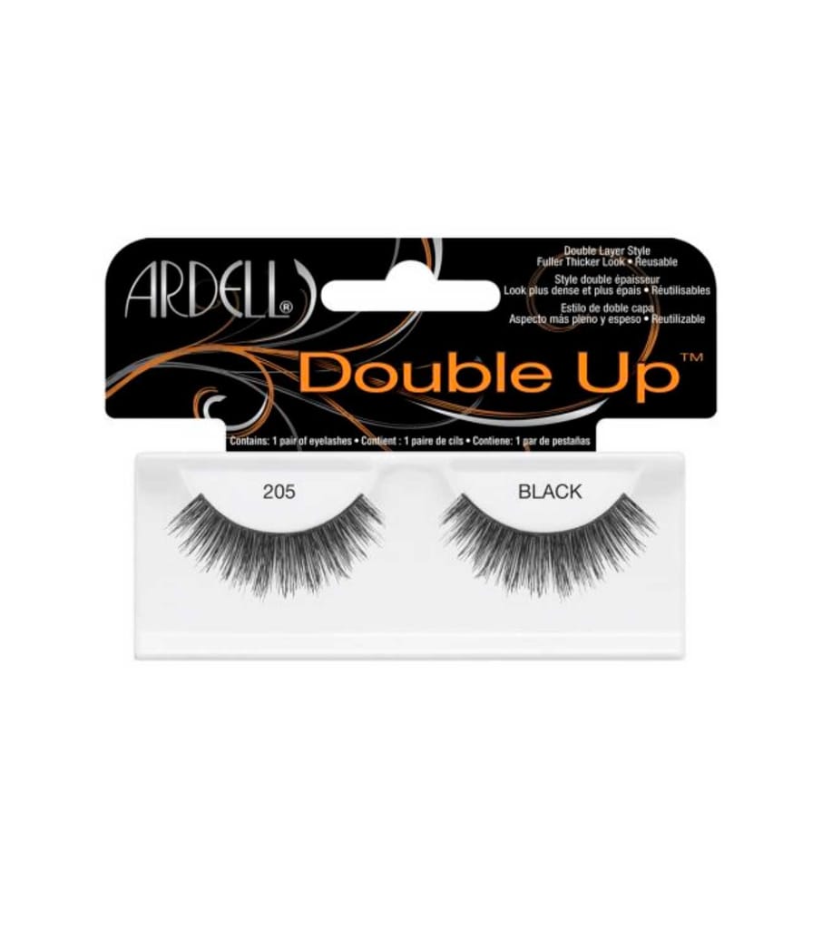 Ardell Double Up Lashes 205 in a super value multipack of 4. - High quality, handmade lashes - Double layered style for a fuller, thicker effect - Lash adhesive is sold separately Opt for something different and try these super full, voluminous lashes from Ardell. Each box contains one pair of handmade lashes, they're easy to apply and can be reused.