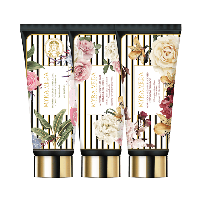 Ingredients:The Greek Goddess :-Aqua, Kaolin Clay, Zinc Oxide (Non-Nano), Shea Butter, Cetyl Alcohol(Coconut Derived), Biodegradable Microbeads & Jojoba Beads, Emulsifying Wax ( Vegetable Derived), Glycerin, Phenoxyethanol (Paraben-Free Preservative), Ethylhexylglycerin (Plant Derived), Fragrance Blend (Using Essential Oils), Xanthan Gum (corn Derived) + Mediterranean White Sage Hand & Body Lotion :-Aqua, Shea Butter, Emulsifying Wax(Vegetable Derived), Sweet Almond Oil, Jojoba Oil, Avocado Oil, Glycerin, Sodium Lactate (com Derived), Cetyl Alcohol (Coconut Derived), Phenoxyethanol(Paraben-Free Preservative), Ethylhexylglycerin(Plant Derived), Fragrance Blend (Using Essential Oils). + Moroccan Argan & Blackseed Restorative Shampoo :- Aqua, Coconut & Corn Derived Surfactants, Glycerin, Tween 20 (Fruit Derived), Lysine (Amino Acid), Polyquaternium 10(Plant Cellulose),Panthenol (Vitamin B5), Phenoxyethanol (Paraben-free Preservative), NaOH (Alkalai Soda), Octoxyglycerin ( Vegetable Derived), Citric Acid, Argan Oil, Blackseed(Kalonji)Oil, Aloe Vera Extract, Olive Oil, Castor Oil, Ginger Extract, Neem Oil, Fragrance blend using Essential Oils.The Greek Goddess :-Aqua, Kaolin Clay, Zinc Oxide (Non-Nano), Shea Butter, Cetyl Alcohol(Coconut Derived), Biodegradable Microbeads & Jojoba Beads, Emulsifying Wax ( Vegetable Derived), Glycerin, Phenoxyethanol (Paraben-Free Preservative), Ethylhexylglycerin (Plant Derived), Fragrance Blend (Using Essential Oils), Xanthan Gum (corn Derived) + Mediterranean White Sage Hand & Body Lotion :-Aqua, Shea Butter, Emulsifying Wax(Vegetable Derived), Sweet Almond Oil, Jojoba Oil, Avocado Oil, Glycerin, Sodium Lactate (com Derived), Cetyl Alcohol (Coconut Derived), Phenoxyethanol(Paraben-Free Preservative), Ethylhexylglycerin(Plant Derived), Fragrance Blend (Using Essential Oils). + Moroccan Argan & Blackseed Restorative Shampoo :- Aqua, Coconut & Corn Derived Surfactants, Glycerin, Tween 20 (Fruit Derived), Lysine (Amino Acid), Polyquaternium 10(Plant Cellulose),Panthenol (Vitamin B5), Phenoxyethanol (Paraben-free Preservative), NaOH (Alkalai Soda), Octoxyglycerin ( Vegetable Derived), Citric Acid, Argan Oil, Blackseed(Kalonji)Oil, Aloe Vera Extract, Olive Oil, Castor Oil, Ginger Extract, Neem Oil, Fragrance blend using Essential Oils.
